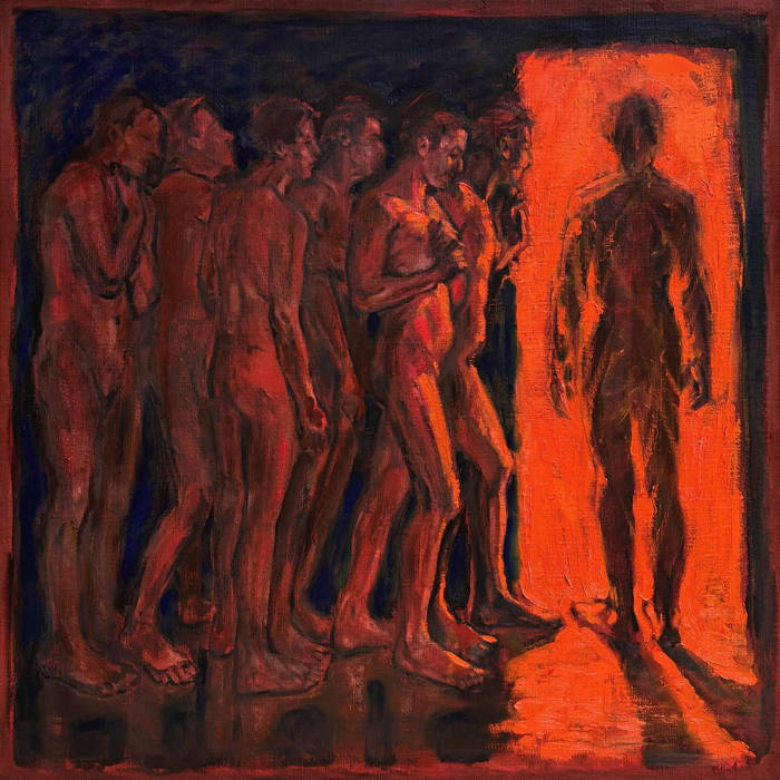 Six naked men stand fearfully before a door in which a dark figure can be seen. Is it the gateway to the afterlife? Or the entrance to certain death? We do not know — but there are album covers that immediately leave an impression and make you think. Złudnia, the latest work by the Polish ensemble Angrrsth, is one of those.